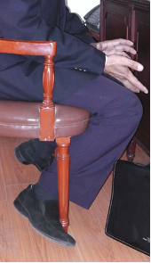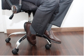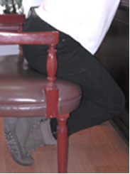 - Colocación de los pies y piernas: apoye toda la planta de los pies en el piso, sin presión, pues el peso del cuerpo reposará ante todo en los isquiones (los huesos que hay debajo de cada nalga), rodillas en ángulo recto, piernas tan abiertas como la cadera, rodillas en ángulo recto o ligeramente más amplio. Evite colocar los pies debajo de la silla, pues se afectará su postura, generará dolor en espalda y su imagen se proyectará sumisa (si se derrumba) o aprehensiva (si se tensiona).