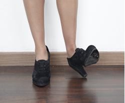 - Estabilidad en la pisada: plante con firmeza los pies en el piso, sintiendo el contacto desde los talones hasta la punta de los dedos. Al caminar, perciba con claridad este contacto, permita que el movimiento inicie desde la cadera y realice desplazamientos que sean estratégicos y no parásitos[1]. Ejemplos de desplazamientos parásitos son: el reacomodar el peso del cuerpo reiterativamente de un pie a otro y la realización de movimientos predecibles, de adelante a atrás o de lado a lado, como los que se harían en un baile de pasos cortos.